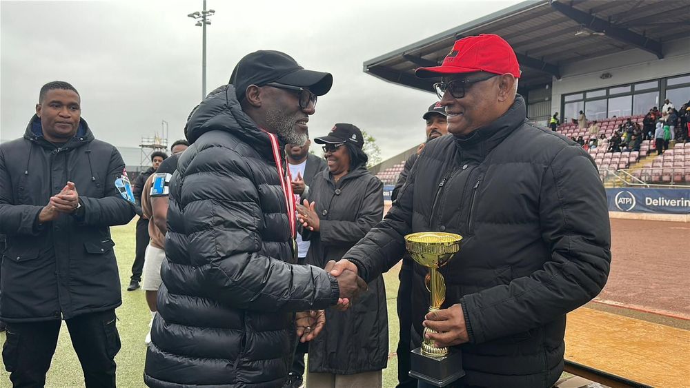 Das mãos da Cônsul-Geral de Angola no Reino Unido, Luzia Dias dos Santos, recebeu a taça de equipa vencida o seu capitão, Djalma Campos, um dos convidados de honra que representou a Selecção de Angolanos residentes em Manchester.