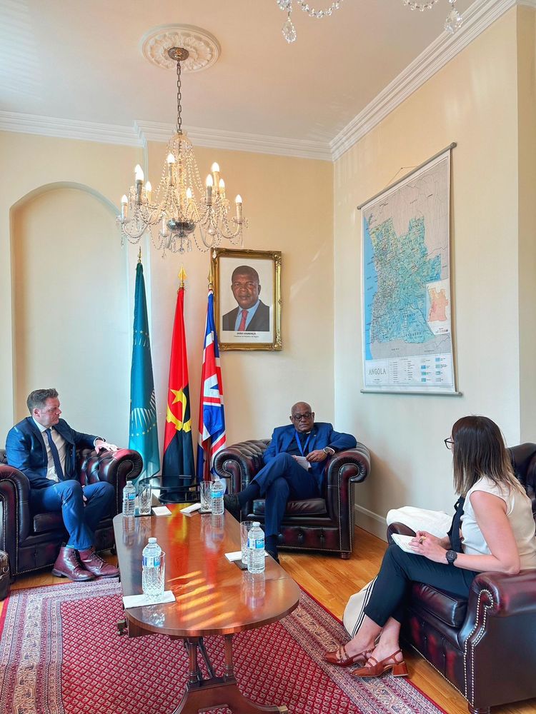 Londres , 08/05/2025-O Embaixador designado de Angola no Reino Unido, S.E José Patrício recebeu, hoje, no seu gabinete, o Director Geral do grupo inglês MAG, Darren Cormack, que opera em Angola na área da desminagem.
