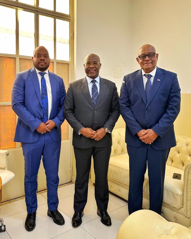 Sua Excelência José Patrício, Embaixador de Angola no Reino Unido, e a sua equipa reuniram-se, hoje, 01/10/2025, com o Director de Cooperação Internacional do Ministério das Relações Exteriores (MIREX), Dr. José Paulino Cunha da Silva, com o objectivo de reforçar a articulação institucional no domínio da política externa de Angola.