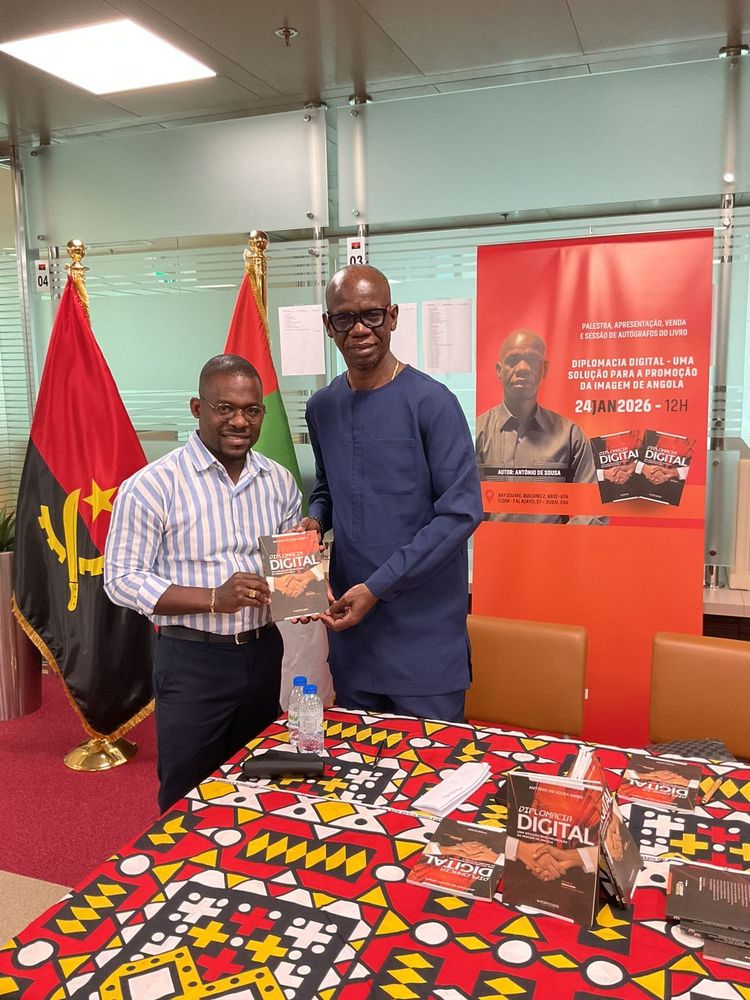 Membros da comunidade angolana, empresários, estudantes e diplomatas no Dubai, Emirados Árabes Unidos, tomaram hoje contacto com o livro sobre diplomacia digital do diplomata e jornalista António de Sousa Simbo.