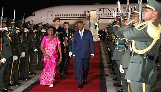 Desde ontem à noite em Luanda, onde foi recebida no Aeroporto Internacional “4 de Fevereiro” pelo ministro das Relações Exteriores, Téte António, a Chefe de Estado da Índia é recebida na Cidade Alta com Honras Militares e 21 Salvas de Canhão, antes de depositar, ainda hoje, uma coroa de flores no sarcófago do primeiro Presidente da República de Angola, António Agostinho Neto.
