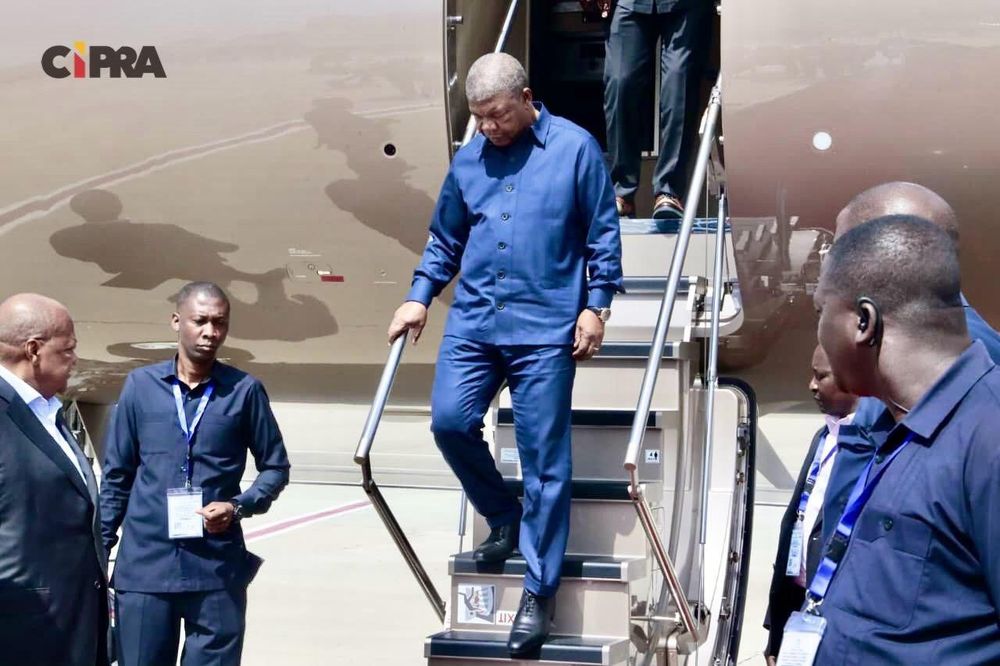 As imagens deste texto documentam o momento da chegada do Presidente ao Aeroporto Internacional da Catumbela, onde foi recebido em festa pela população.